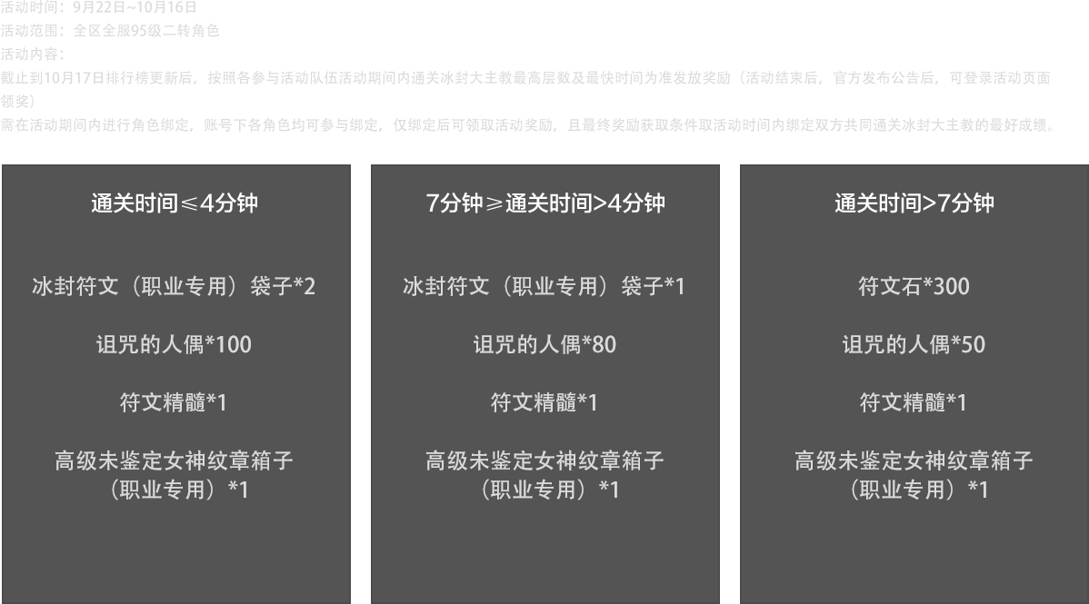 | 排名 | 区名 | 角色名 | 职业 | 所在公会 | 层数 | 通关时长 |