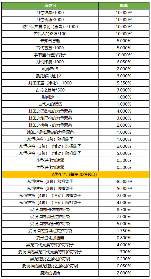 在本活动页面,使用15000点券,购买1个【月蚀宝玉古代级选择袋子】,获赠15次许愿次数,【账号限购20个】 ;