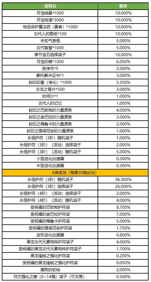 在本活动页面,使用15000点券,购买1个【月蚀宝玉古代级选择袋子】,获赠15次许愿次数,【账号限购20个】 ;