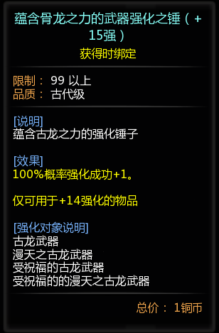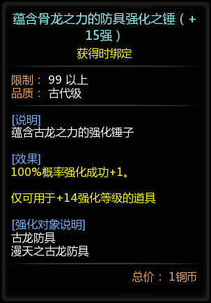 蕴含骨龙之力的武器强化之锤(+15强)*1(可封印1次)