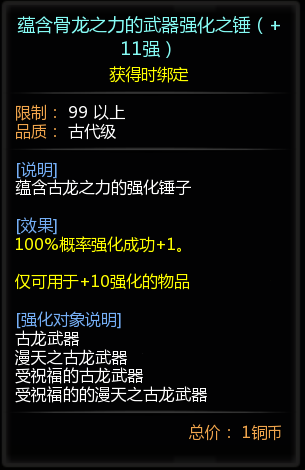 蕴含骨龙之力的武器强化之锤(+11强)*1(可封印1次)