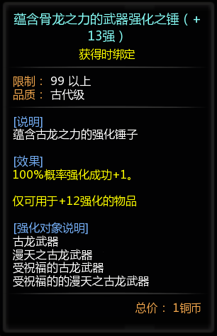 蕴含骨龙之力的武器强化之锤(+13强)*1(可封印1次)