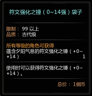 夕阳符文强化之锤袋子(+0~+14)(可交易)